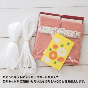 キットをいくつかご用意しましたので、お好きな布ぞうりキットを選んで能登のみなさんへプレゼントとして購入していただきたいのです。